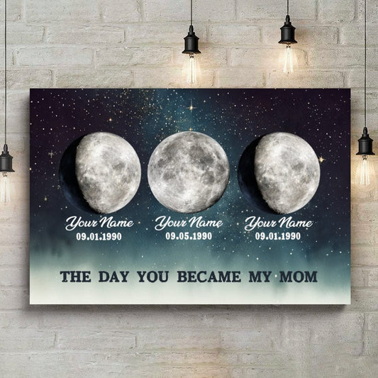 The Day You Became Mom Custom Birth Moon Phase Canvas