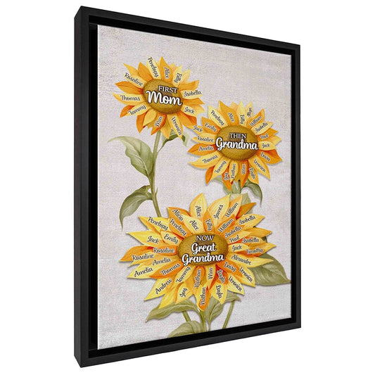 First Mom Then Grandma Now Great Grandma | Custom Names Sunflower Canvas Gift
