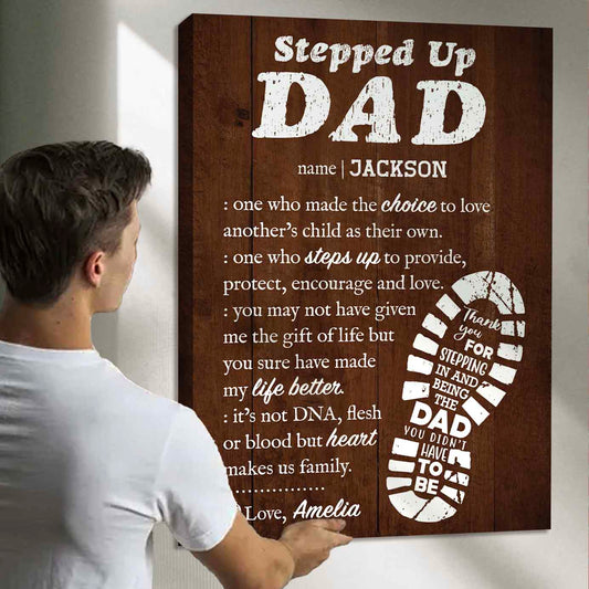 Stepped Up Dad Custom Name Premium Canvas Gift
