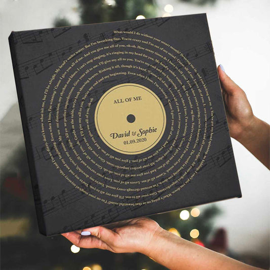 Dark Vinyl Record - Custom Couple Song Lyrics on Premium Canvas