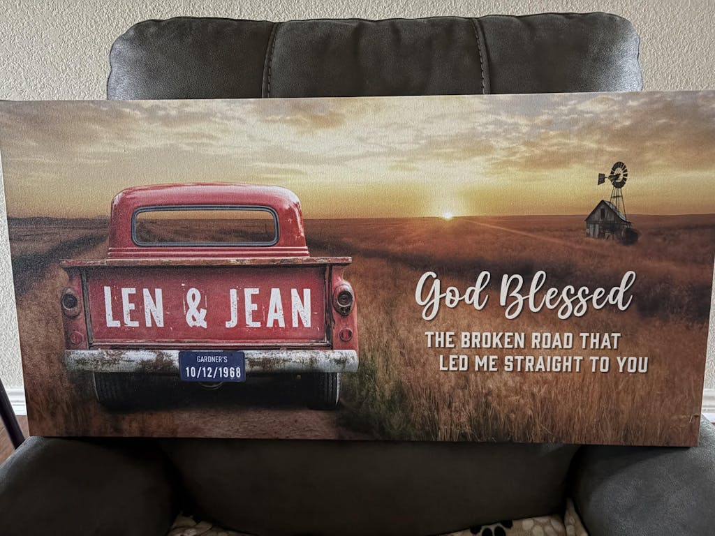 Wonderful, personalized canvas print. The added frame added the right touch. Love, love, love it.