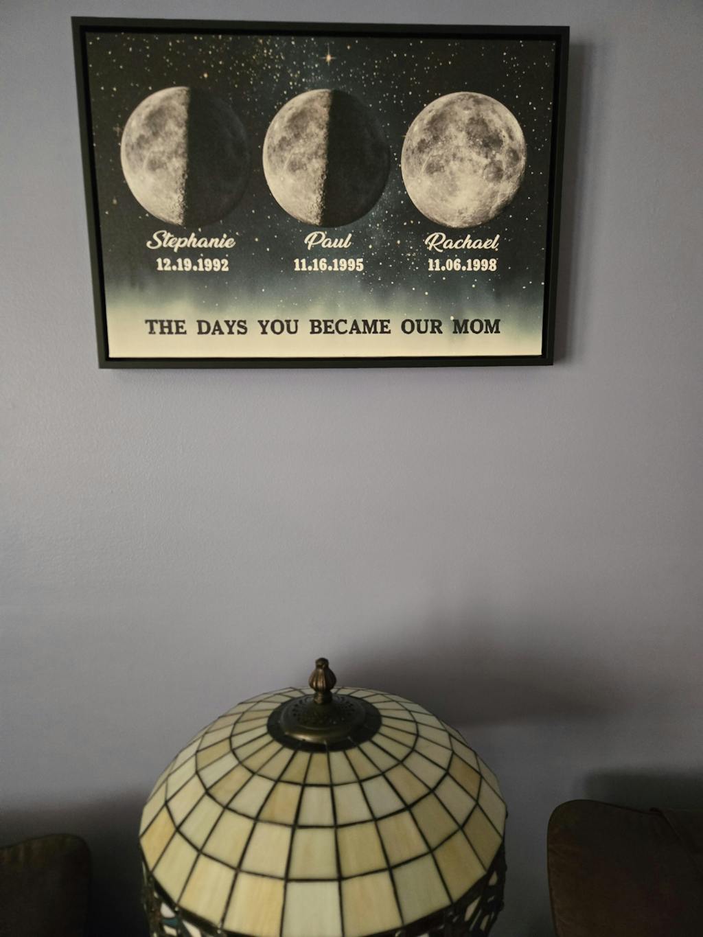 The quality of the Mother’s Day moon piece is fantastic. It goes great with almost any color wall as well. My wife loved the gift. The turn around production to shipping was pretty fast too. It was here in plenty of time even though I was cutting it kinda close ordering it. I would recommend this company to anyone.